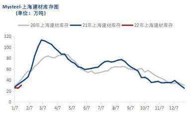 从上海本地螺纹库存情况来看,截至1月发稿,上海本地螺纹库存为30.70万吨,环比上周增加5.68万吨,增幅为18.50%;同比20年减少9.99万吨,减幅为24.55%。从累库起点看,本地开始累库的水平同比低于往年。从累库周期看,21年冬储累库周期接近两个半月。而22年本地未有疫情影响市场集中于常规时间放假叠加本地需求持续性表现较好,直至1月下旬本地才进入常规累库状态,累库周期也将明显缩短。