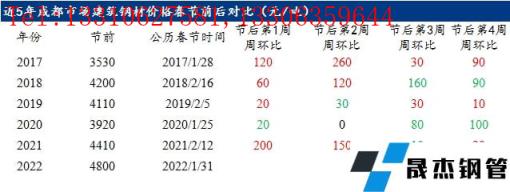 进入2022年,随着原料价格上涨,冬奥会限产,以及房地产政策稍有放宽等利多因素下,钢材价格整体呈现震荡偏强走势。截止1月25日,成都市场螺纹钢价格4800元/吨,较2021年春节前价格上涨390元/吨,涨幅8.84%,为近年来最高水平。此外,由于春节前后省外无缝钢管厂资源流入同比将大幅减少,市场对节后预期较好,川内无缝钢管厂自储比例小幅增加,且给予的冬储政策多为资金优惠政策,让利幅度有限;恐高心理,加之冬储资源有限,商家整体冬储量相对较少。从历史价格数据情况来看, 2020年受突发公共安全事件影响,需求释放延缓,库存大幅累计,钢价持续走弱, 除此之外,其余年份春节后钢价多以偏强运行态势。2022年春节后,在众多利好因素下,预计四川建材价格或偏强运行为主。
