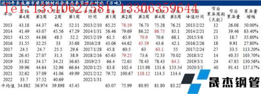 回顾近10年来成都建筑钢材社会库存春节前后对比,成都建筑钢材库存平均累库量在41.17万吨左右,累库幅度在90.88%,2020年累库较为明显。2022年春节放假较早,川内短流程无缝钢管厂停产放假时间提前,加之北方资源到货同比减少,节前成都建筑钢材社会库存累积缓慢。近10年来春节后成都建筑钢材库存峰值均出现第3-4周,累库周期约21天。节后库存峰值最高为2020年近158.05万吨,其次是2021年的118.12万吨。从川内无缝钢管厂停产检修计划,以及省外无缝钢管厂资源到货情况来看,预计节后四川建材库存累积周期或较去年缩短,且库存峰值亦明显下降。