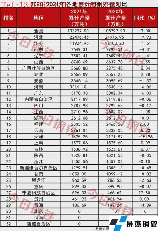 免责声明:本网站(山东聊城向日葵视频网站无缝钢管厂www.dianmore.com)刊载的“2021年压减粗钢产量任务完成!今年压减或超2000万吨!”等均源于网络,版权归原作者所有,且仅代表原作者观点,本文所载信息仅供参考。转载仅为学习与交流之目的,如无意中侵犯您的合法权益,请及时联系删除。本网站刊登此篇文章并不意味着本站赞同其观点或证实其内容的真实性,向日葵视频网站不对其科学性、严肃性等作任何形式的保证。如果侵犯了您的版权,请尽快联系向日葵视频网站予以撤销,谢谢合作!