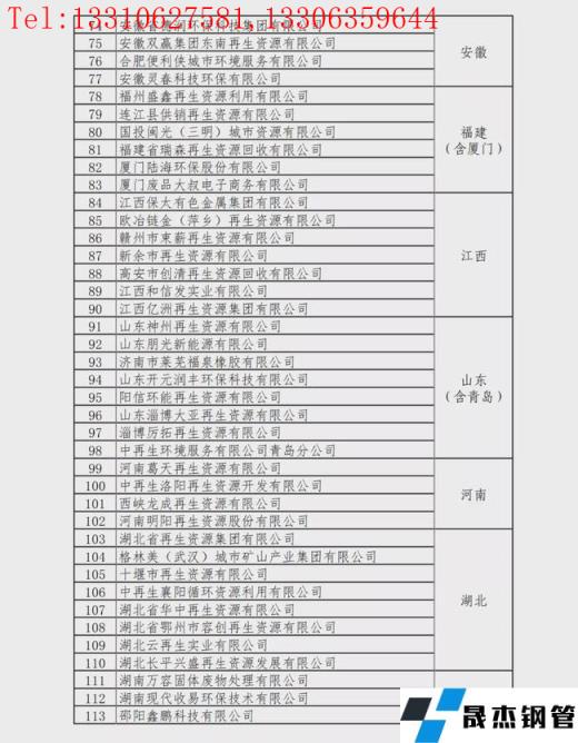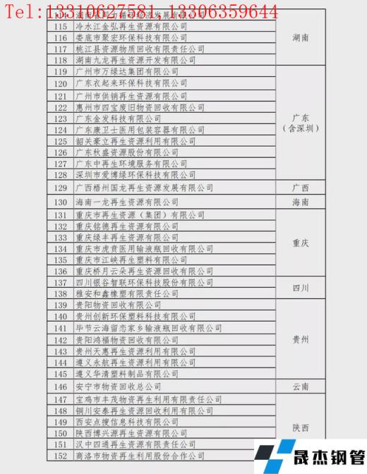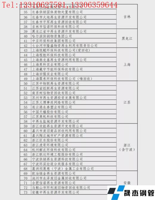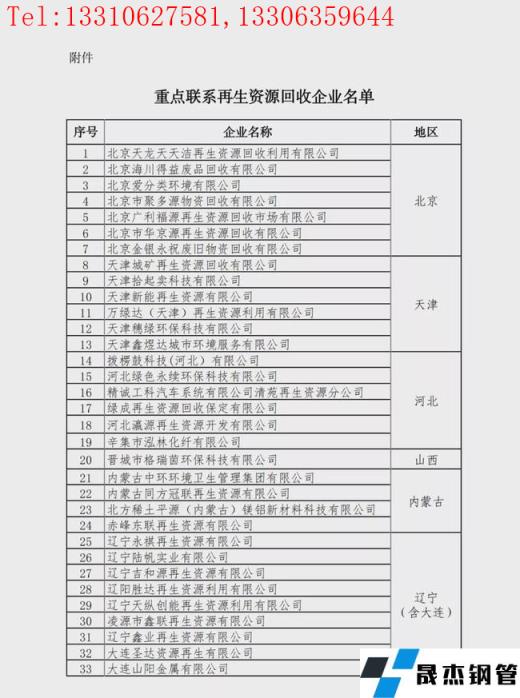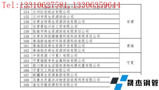 重点联系再生资源回收企业名单: