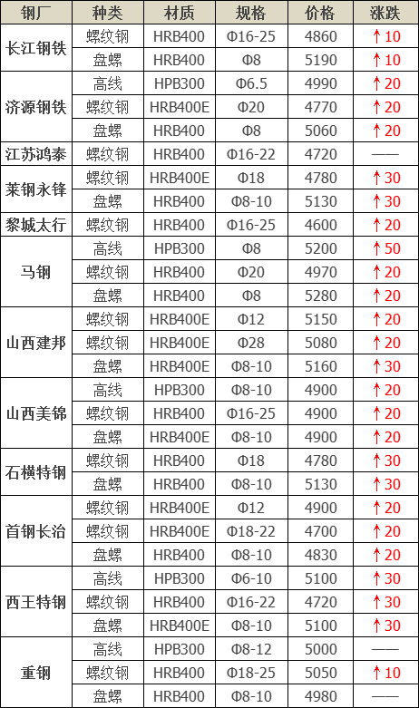 今型价窄幅上行,幅度20-100。昨成本端支撑上移,期螺持红运转,厂商盼涨意愿强。但下游需求持续缩减,成交淡。短期型价将趋稳观望;