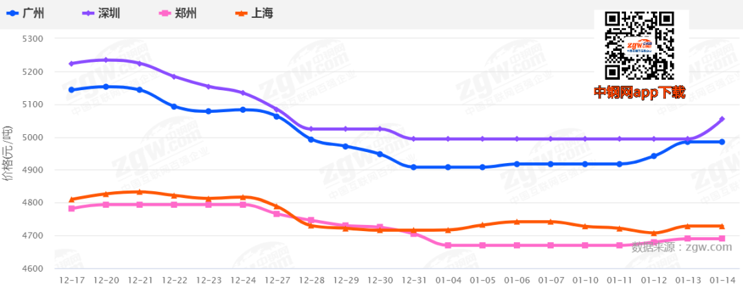 截至1月14日,全国237家流通商周均成交量11.92万吨,周均成交量环比减少2.84万吨,减幅为19.24%。据不完全统计,40家电弧炉独立建筑钢材生产的钢厂中,已有25家停产,占62.5%。其中,1月1日前停产的钢厂占24%,而1月1日至1月10日停产的钢厂占60%,处于钢厂集中停产阶段。根据市场收集的信息来看,独立电弧炉建筑钢材钢厂平均成本4817元/吨,周环比上升93元/吨。当前电弧炉钢厂亏损严重,尤其是饱和生产的情况下,吨钢亏损超百元。