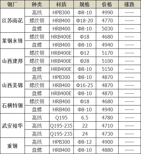 今日钢厂指导价格稳中调整,原料价格略有下降,然近期连续上涨,冬储季贸易商冬储意愿变弱,临近春节,下游需求不高,市场成交表现不佳,厂商多稳价去库。预计短期钢厂价格持稳偏弱。