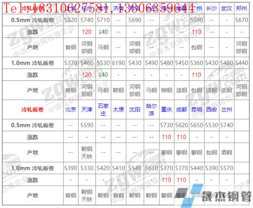 全国23个主要市场1.0mm 冷轧板卷平均价格5476元/吨,较上个交易日上调1元/吨。