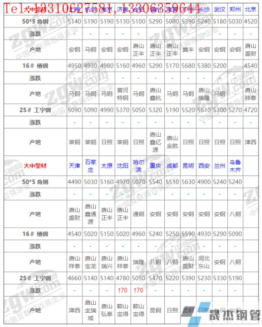 今型价个别调整70,成本支撑上移,但由于季节性疲软,需求持续萎缩,型价涨势放缓,部分厂商低位探涨,成交平平。预计短期型钢价格或稳中整理;