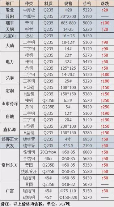 今日板、型、管、特钢共16家向日葵视频污APP下载调价发布,其中: