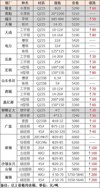 今日板、型、管、特钢共18家向日葵视频污APP下载调价发布,其中: