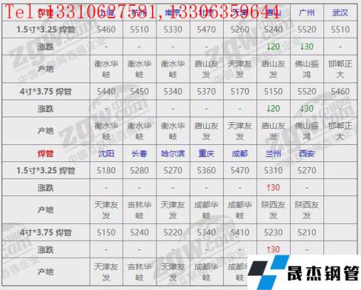 全国15个主要市场1.5寸*3.25 焊管平均价格5363元/吨,较上个交易日下调1元/吨。