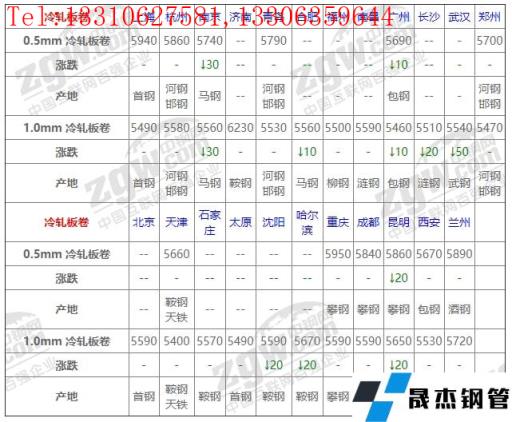 全国23个主要市场1.0mm 冷轧板卷平均价格5583元/吨,较上个交易日下调9元/吨。