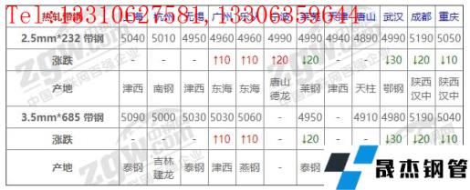 全国12个主要市场2.5mm*232 带钢平均价格4997元/吨,较上个交易日下调3元/吨。
