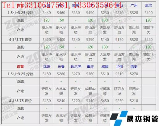 全国15个主要市场1.5寸*3.25 焊管平均价格5356元/吨,较上个交易日下调7元/吨。