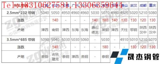 全国12个主要市场2.5mm*232 带钢平均价格5023元/吨,较上个交易日上调26元/吨。