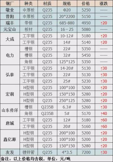22日广东河源德润钢铁到厂涨30-50:钢筋切粒3480;边角料,新钢板料3450;纯钢筋头,直钢筋3430;模具钢、料头圆钢、轨道钢、火车轮3430;硅钢片停收;冷轧、热轧、碎料冲子3380;优重3430;锻打料、马蹄铁3430;重废3400;机械生铁、高碳钢、铸钢件、生熟混装3400;厚剪3350,不含税。
