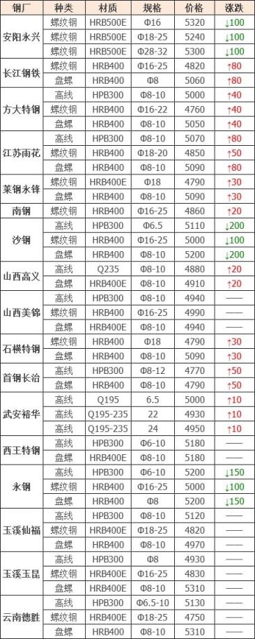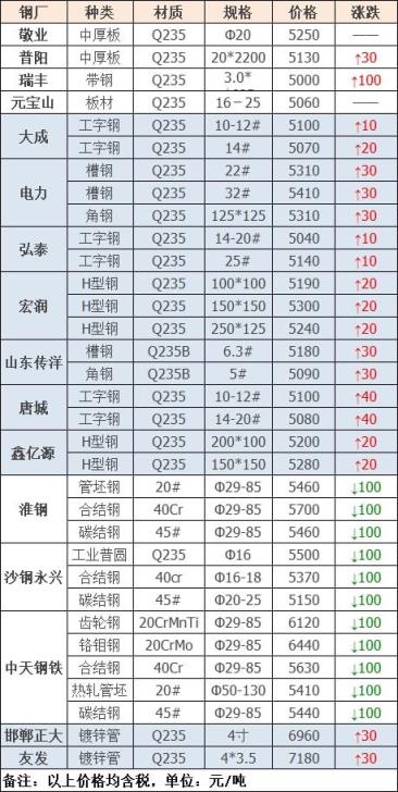 今日板、型、管、特钢共16家向日葵视频污APP下载调价发布,其中: