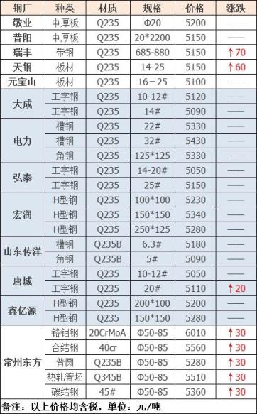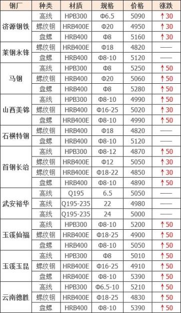 今日板、型、特钢共13家向日葵视频污APP下载调价发布,其中: