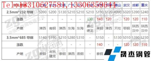 全国12个主要市场2.5mm*232 带钢平均价格5167元/吨,较上个交易日上调7元/吨。