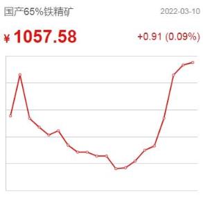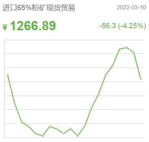 3月11日,根据今日铁矿的消息来看,本周进口铁矿石价格整体下跌,而国产铁矿价格走势良好。分类别来看,进口65%粉矿现货贸易价格1266.89元/吨,较前一个交易日下跌56.3,跌幅4.25%;进口65%粉矿到岸价格186.69美元/吨,较前一个交易日下跌2.26,跌幅1.2%;国产65铁精矿涨0.91收于1057.58元/吨,涨幅0.09%;国产62%铁精矿涨0.75收于944.37元/吨,涨幅0.08%。