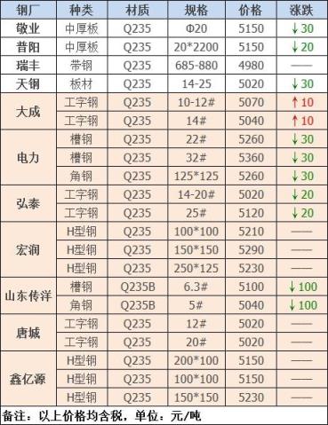 3月16日唐山燕钢废钢降120-200:优质3545,重A3490,重B3390,中A3450,中B3350,优质铸铁3370,大件剪切3470,炉一3380,炉二3360,炉三3260,炉四1880,剪切一3165,剪切二2965,剪切三1565,不含税,单位:元/吨。