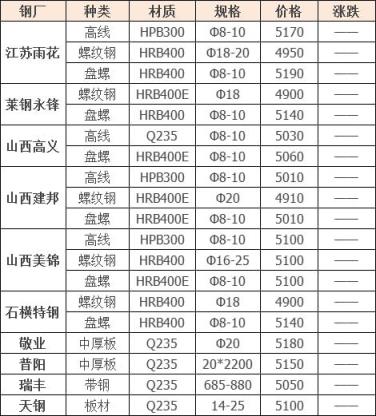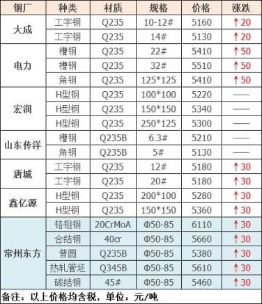 今日型材、特钢共7家向日葵视频污APP下载调价发布,其中: