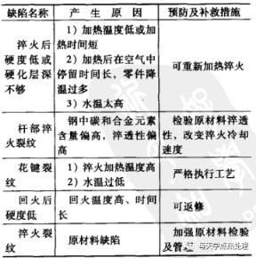 ▼表15半轴表面感应淬火常见缺陷的预防及补救措施
