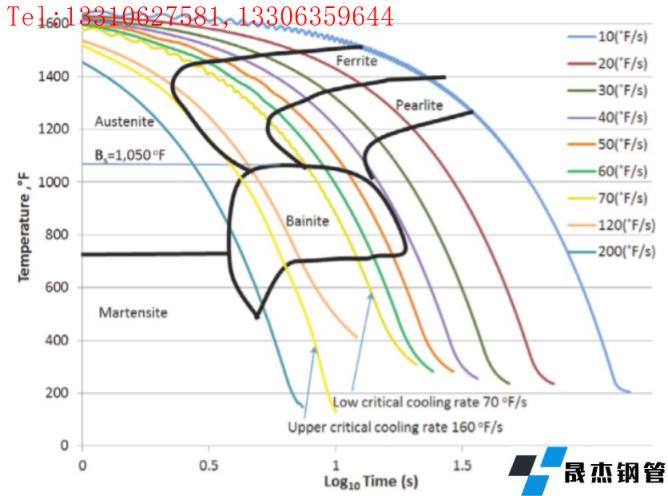 钒、铌和钛是管线用钢中常用的三种微合金元素,可以添加少量的铬、镍、铜和氮而得到其它的特殊用途,如耐大气腐蚀和耐热性,这些合金元素和微合金元素对CCT图有显著的影响。[12]