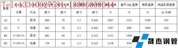 精轧最后三道次的带钢温度控制在1700℉的非再结晶温度以下,为了检查厚度方向上组织的均匀性,将含钒的HSLA钢板轧制至0.642英寸(16mm)钢板,采用9道次轧制程序,钒结合铌和钛HSLA钢使用11道次轧制成0.322英寸(8mm)厚度的钢板。