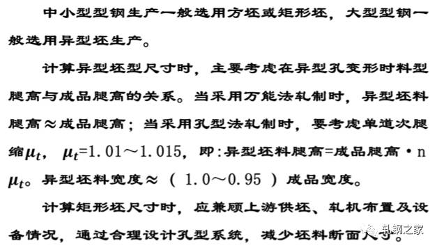 坯料断面尺寸与许多因素有关。在供坯条件能够满足要求的情况下,决定坯料断面尺寸除考虑坯料在轧制过程中有足够的变形量,满足成品的质量要求外,还要求考虑轧辊强度和轧制时要入条件的限制。