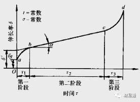 第一阶段ab为减速蠕变阶段又称过渡蠕变阶段,这一阶段开始的蠕变速率很大,随着时间延长蠕变速率逐渐减小,到b点蠕变速率达到最小值;
