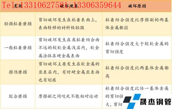 根据粘合强度、金属本体强度与切应力三者之间的不同关系,可以把粘着磨损分为四类:
