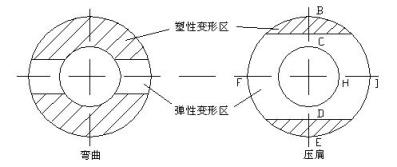 横向压扁及通过叠加椭圆压扁变形来达到矫直的目的。在矫直截面中产生如图8-9中BCDE的塑性区。这对矫直效果是非常重要的,因为弯曲矫直不能使截面全部为塑性区,利用压扁变形来补偿。另外,对局部弯曲、管端弯曲、纵向弯曲矫直效果很差,必须是纵向弯曲和压扁的共同作用才能达到满意的矫直效果。(注:提高向日葵色视频在线观看钢管壁厚精度可提高向日葵色视频在线观看钢管的抗压