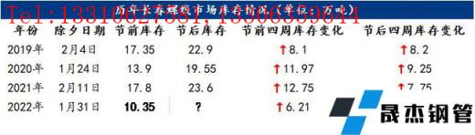 再从库存上来看,过去三年长春市场螺线库存在节前均在13万吨以上,而今年仅在10.35万吨,较去年下降41.9%,较前年下降25.5%;而节前历年库存均呈快速增加态势,2019-2021年逐年增加,增量在8.1-12.75万吨,但今年仅增6.21万吨,环比去年下降51.3%。