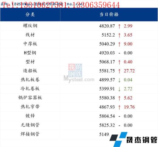 日报:钢材_无缝钢管价格指数上涨3.92元/吨
