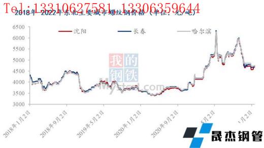 每年进入12月份后、东北建筑钢材市场因下游工程大部分停工、需求锐减,而无缝钢管厂多忙于北材南下无暇北顾,供需两弱状态下,价格对成交难以造成较大影响,商家也懒于调整对外报价,所以市场多数平稳运行为主,而今年进入1月后、市场价格仍出现了比较明显的反季运行征象,截至2022年1月26日,东北地区主要建筑钢材市场HRB400E螺纹钢φ22mm报收4730-4750元/吨,较2021年12月底拉涨0-180元/吨。