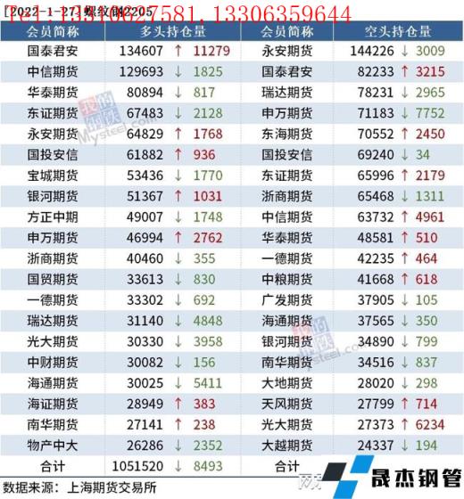 黑色持仓日报:焦煤涨超3%,国泰君安增持1.1万手螺纹钢多单