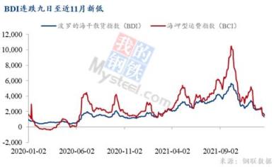 波罗的海干散货运价指数(BDI)是反映全球矿石、煤炭等大宗散货运价的权威指标。近三个月来,因为所有型船需求疲软,截止2022年1月24日,波罗的海干散货运价指数连续第十二个交易日下滑至1391点,为去年2月以来最低水准;BCI跌至891点为2020年6月以来新低。