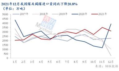 煤炭是与铁矿石海运贸易体量相当的另一大宗商品,10月开始国内原煤产量在增产保供下不断提高,也变相着削弱中国对海外煤的依赖:我国10-12月份原煤产量分别为3.6、3.7、3.8亿吨屡创国内新高,对海外煤炭需求逐渐减弱,12月我国进口煤炭同比下滑20%。步入2022年1月,印尼煤炭出口禁令对海运市场算是雪上加霜。