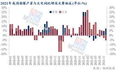 煤炭在供应大幅增产下,国内需求同比下降。与2020年12月同期相比,去年12月下游需求明显高位回落,电力生产同比下降。12月,发电7234亿千瓦时,同比下降2.1%,11月为同比增长0.2%,降幅明显扩大。其中火力发电12月同比下降近5%。
