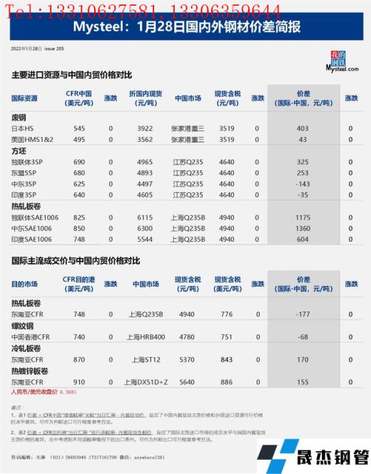 2022年01月28日日报:国内外钢材_无缝钢管价差汇总(2022.1.28)