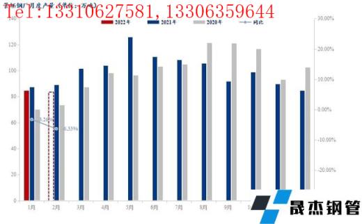 2、2022年2月管坯无缝向日葵色视频在线观看钢管厂家计划排产83.5万吨,较1月份实际产量减少1.1万吨,2月份计划产能利用率为53.98%,较1月实际产能利用率减少0.71%;