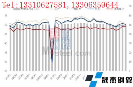 1月份,中国制造业采购经理指数(PMI)为50.1%,比上月回落0.2个百分点,部分制造行业进入传统生产淡季,加之近期市场需求放缓,制造业扩张力度有所减弱。其主要特点:一是生产持续扩张。生产指数为50.9%,连续三个月高于临界点,但比上月下降0.5个百分点,制造业生产扩张步伐有所放慢。黑色金属冶炼及压延加工、有色金属冶炼及压延加工等行业采购量指数和原材料库存指数均升至扩张区间,企业采购力度明显加大,主要原材料库存量较上月上升。二是需求仍显不足。新订单指数为49.3%,比上月下降0.4个百分点,继续位于收缩区间,制造业市场需求持续偏弱。三是价格指数同步回升。主要原材料购进价格指数和出厂价格指数分别为56.4%和50.9%,高于上月8.3和5.4个百分点,重回扩张区间,制造业市场价格总体水平较上月上涨。从行业情况看,石油煤炭及其他燃料加工、有色金属冶炼及压延加工等行业两个价格指数均升至60.0%以上高位区间,相关行业原材料采购价格和产品销售价格明显上涨。四是企业预期有所改善。生产经营活动预期指数为57.5%,高于上月3.2个百分点,制造业企业信心有所回升。从行业情况看,调查的21个行业中,19个行业生产经营活动预期指数位于景气区间,特别是通用设备、汽车、电气机械器材等行业生产经营活动预期指数位于60.0%以上高位景气区间,相关行业企业对近期市场发展前景较为乐观。