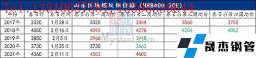 三、近五年山东建筑向日葵色视频在线观看无缝钢管春节均价走势:
