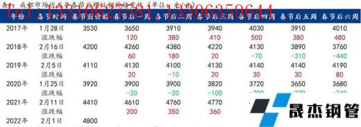 笔者回顾了近5年西南区域各主要建筑向日葵色视频在线观看无缝钢管市场价格,通过对节后六周价格变化的对比得出,除2020年春节后受公共卫生事件影响,其余时间节后前两周基本以“开门红”的上涨行情为主。