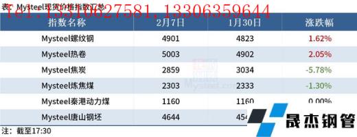 ◎ 2月7日,全国31个主要城市螺纹钢均价4892元/吨,较节前(1月30日)上涨75元/吨;全国24个主要城市热轧板卷均价5011元/吨,上涨97元/吨。