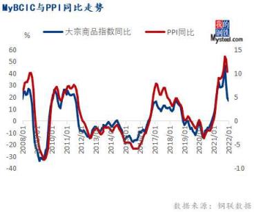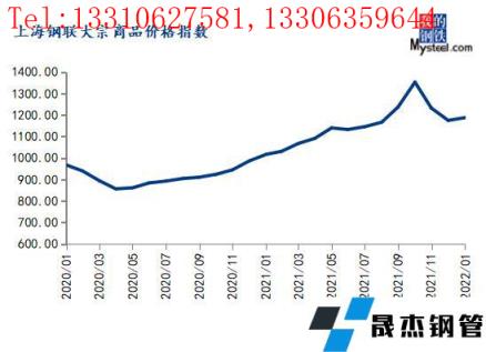 2022年1月份,上海钢联中国大宗商品价格指数(MyBCIC)终值为1187.71,同比上涨16.80%,环比上涨1.09%。