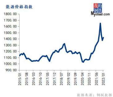 1月份能源价格指数为1421.18,环比上涨3.24%,同比上涨21.58%。