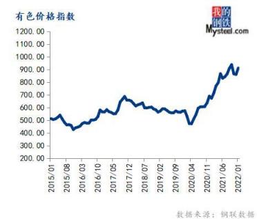 1月份有色价格指数为910.93,环比上涨5.88%,同比上涨35.47%。
