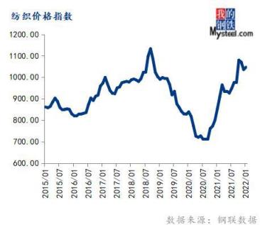 1月份纺织价格指数为1046.62,环比上涨1.07%,同比上涨22.72%。