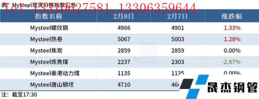 ◎ 2月8日下午,对山东、山西、河南三省43家无缝向日葵色视频在线观看钢管厂家限产状态进行更新,涉及生铁年产能1.58亿。据调研了解,目前43家无缝向日葵色视频在线观看钢管厂家高炉产能利用率为75.31%,日均生铁产量33万吨。为保证冬奥会期间北京的空气质量,预计未来三天内区域内将有11家无缝向日葵色视频在线观看钢管厂家的的烧结、高炉生产有所调整,调整期间影响日均铁水产量4.56万吨/日。