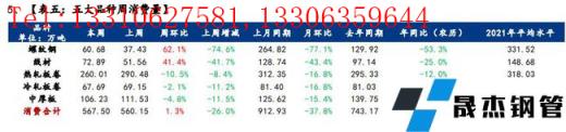 据统计,本周五大品种周消费量种均有下降,合计周消费增至567.5万吨,环比增加7.35万吨,增幅1%;上周五大品种周合计消费560.15万吨,环比减少196.94万吨,降幅26%。目前南方市场消费略有起色,但多数市场尚未有回暖迹象。
